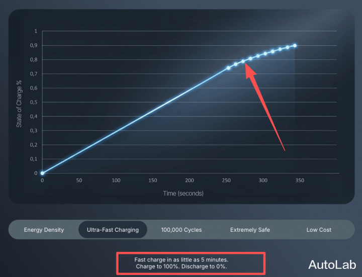 能量密度400Wh/kg,5分钟快充至满电,轮回寿命10万次,资本还比锂电板更低。