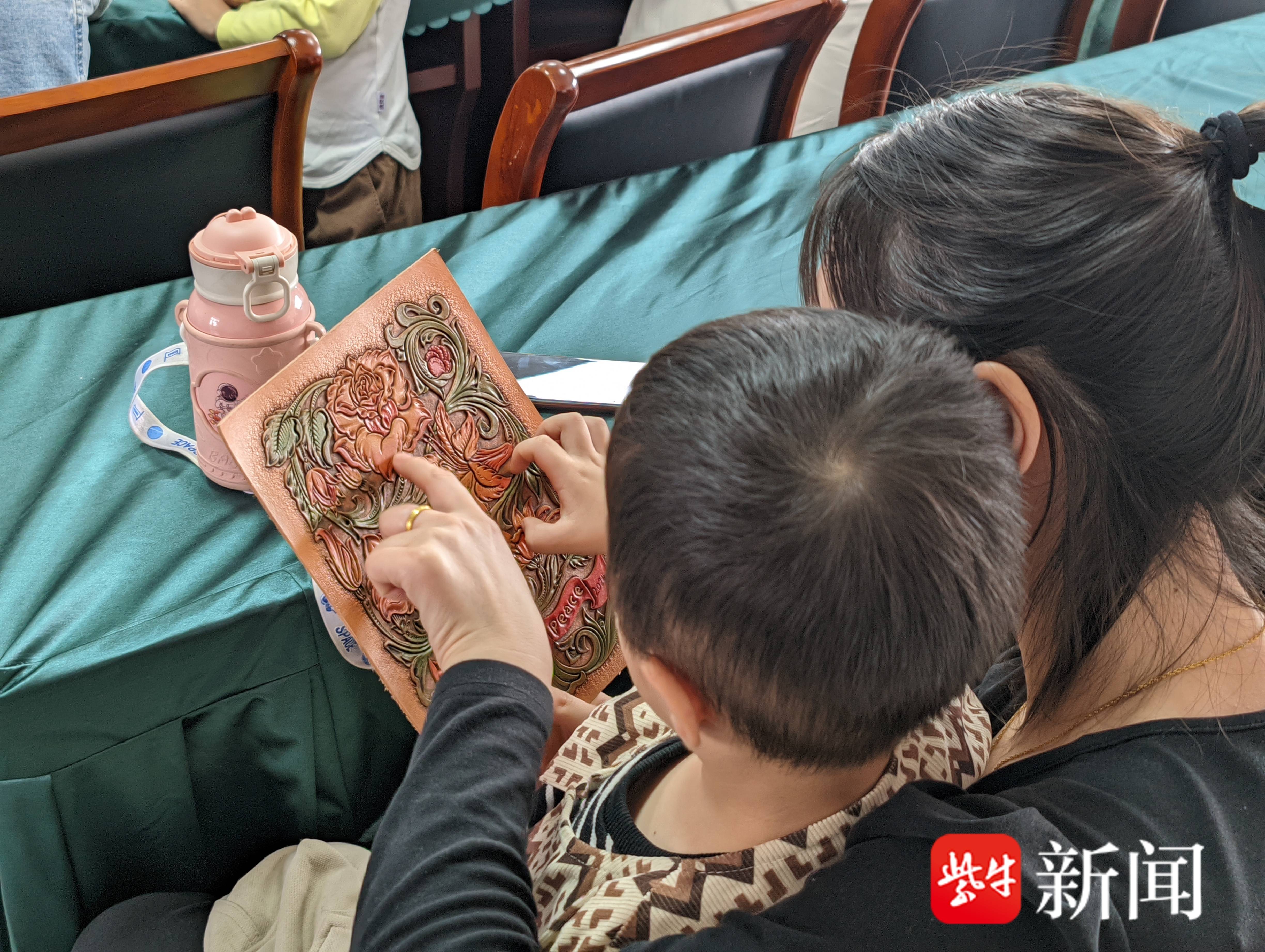 听着皮雕故事和卢憨厚的个东说念主履历,孩子们入迷了,当卢憨厚大方地共享皮雕作品时,孩子们又情愿起来,热吵杂闹土探求起来,触摸着一份份皮雕作品,孩子们发出阵阵咋舌声。