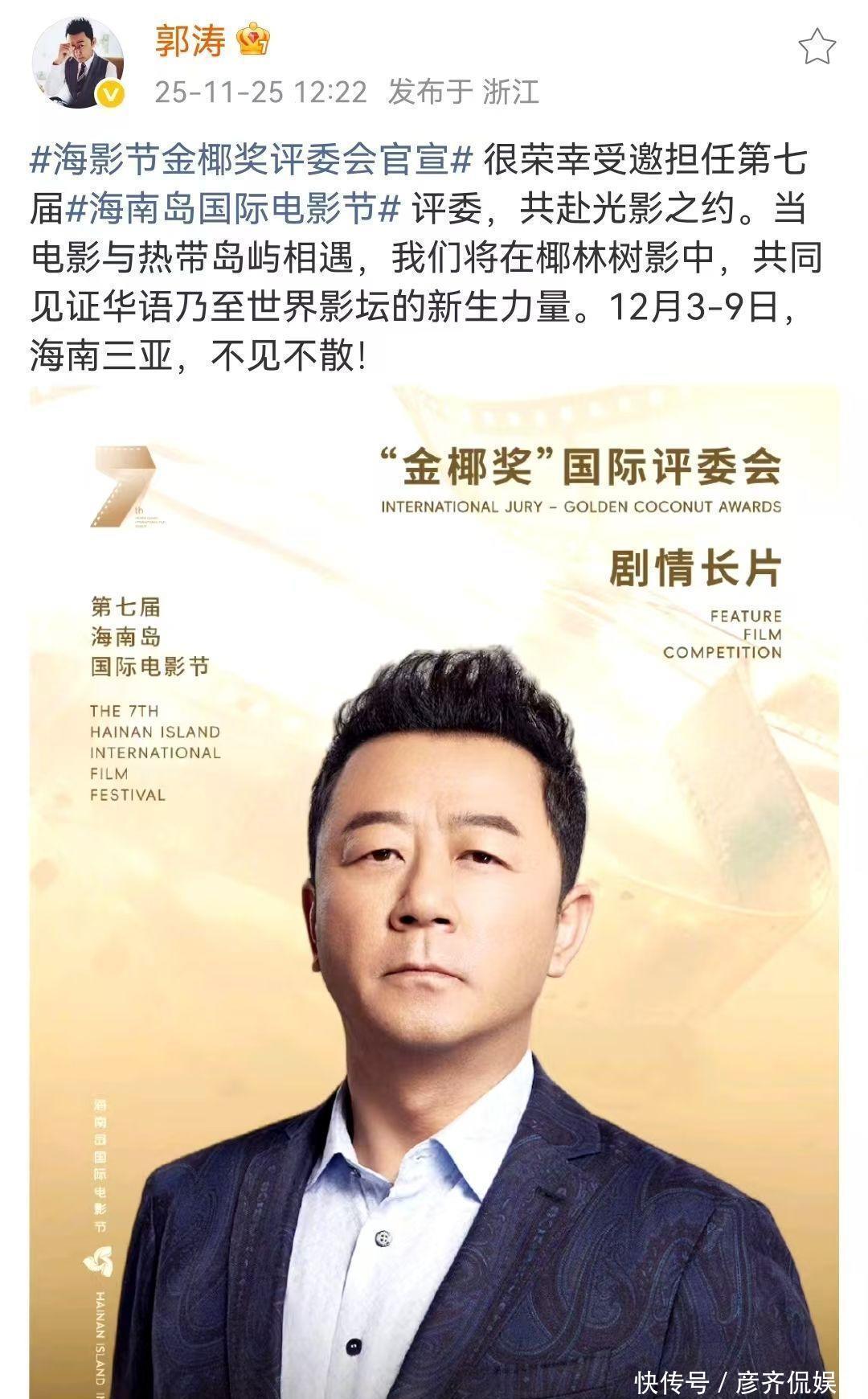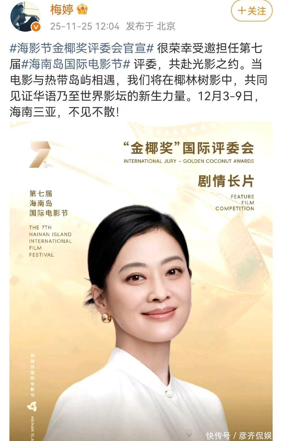梅婷本东说念主在11月25日,有通过个东说念主应对账号发表了对成为评委的感言。除了梅婷以外,受邀成为评委的东说念主内部还有郭涛。