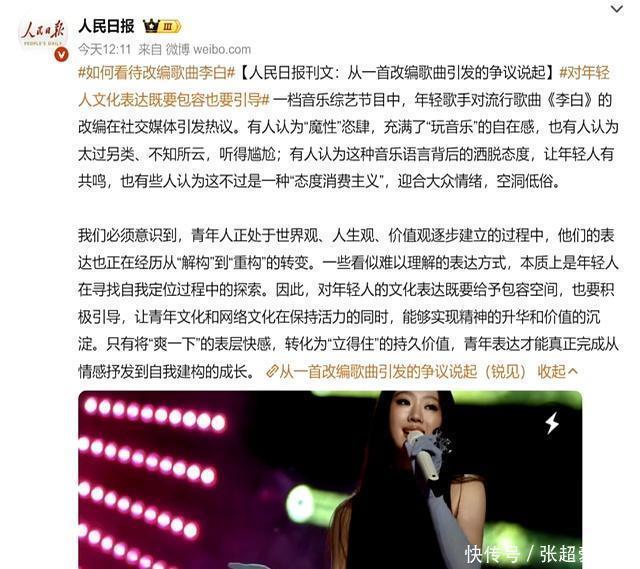 《东谈主民日报》还说,要感性看待这件事情,不要搞相聚暴力,要多给年青歌手饱读舞。