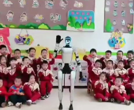 接新、竞走、互动游戏,这个“钢铁伙伴”实确切在地参与谈第一天的课程当中,在操场、在教室和孩子们共处了一天。